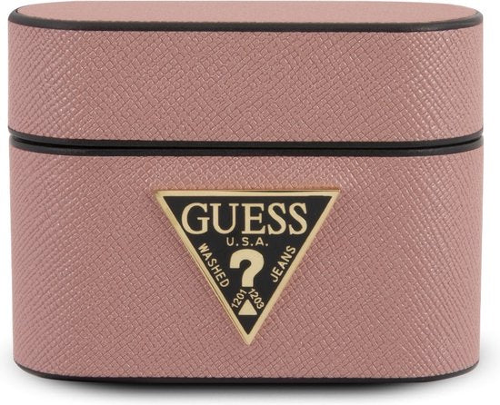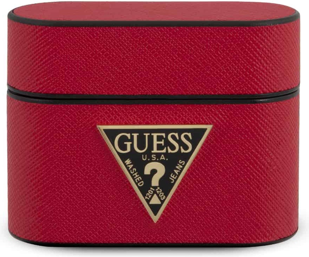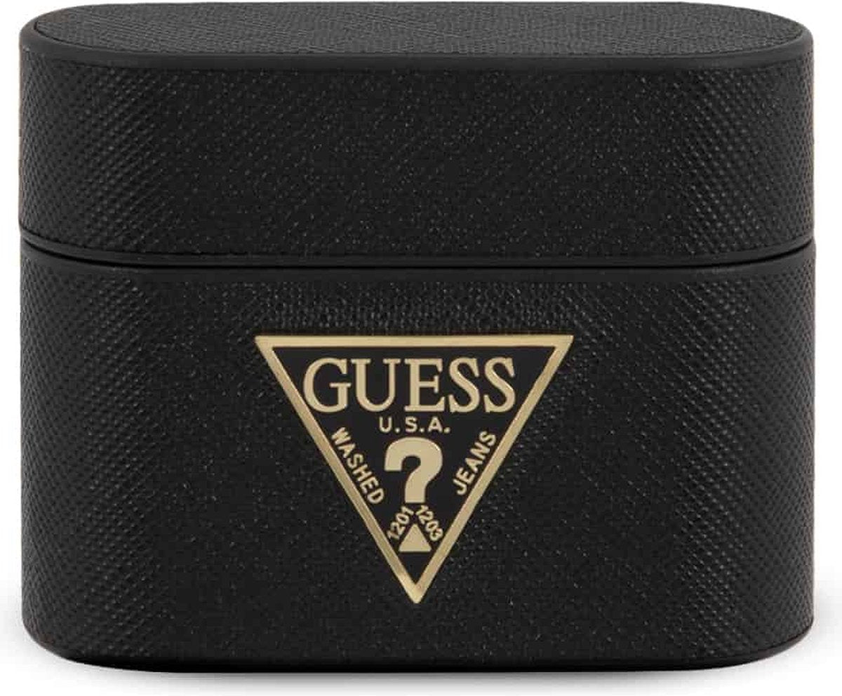 جراب Guess Pu Saffiano دائري الشكل بشعار معدني لسماعات Airpods Pro الجيل الأول