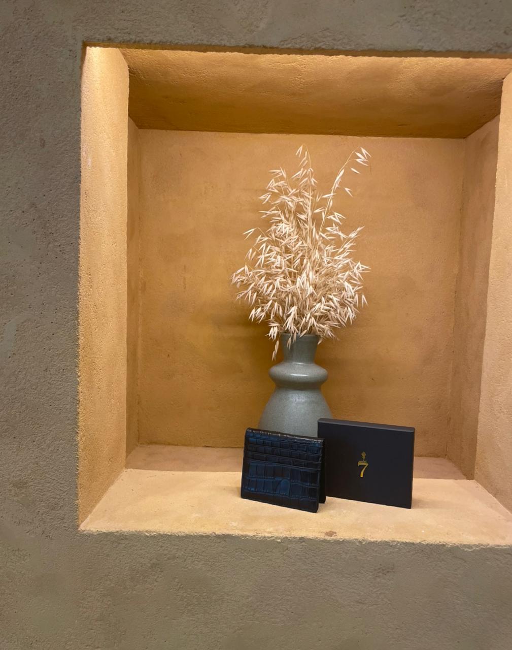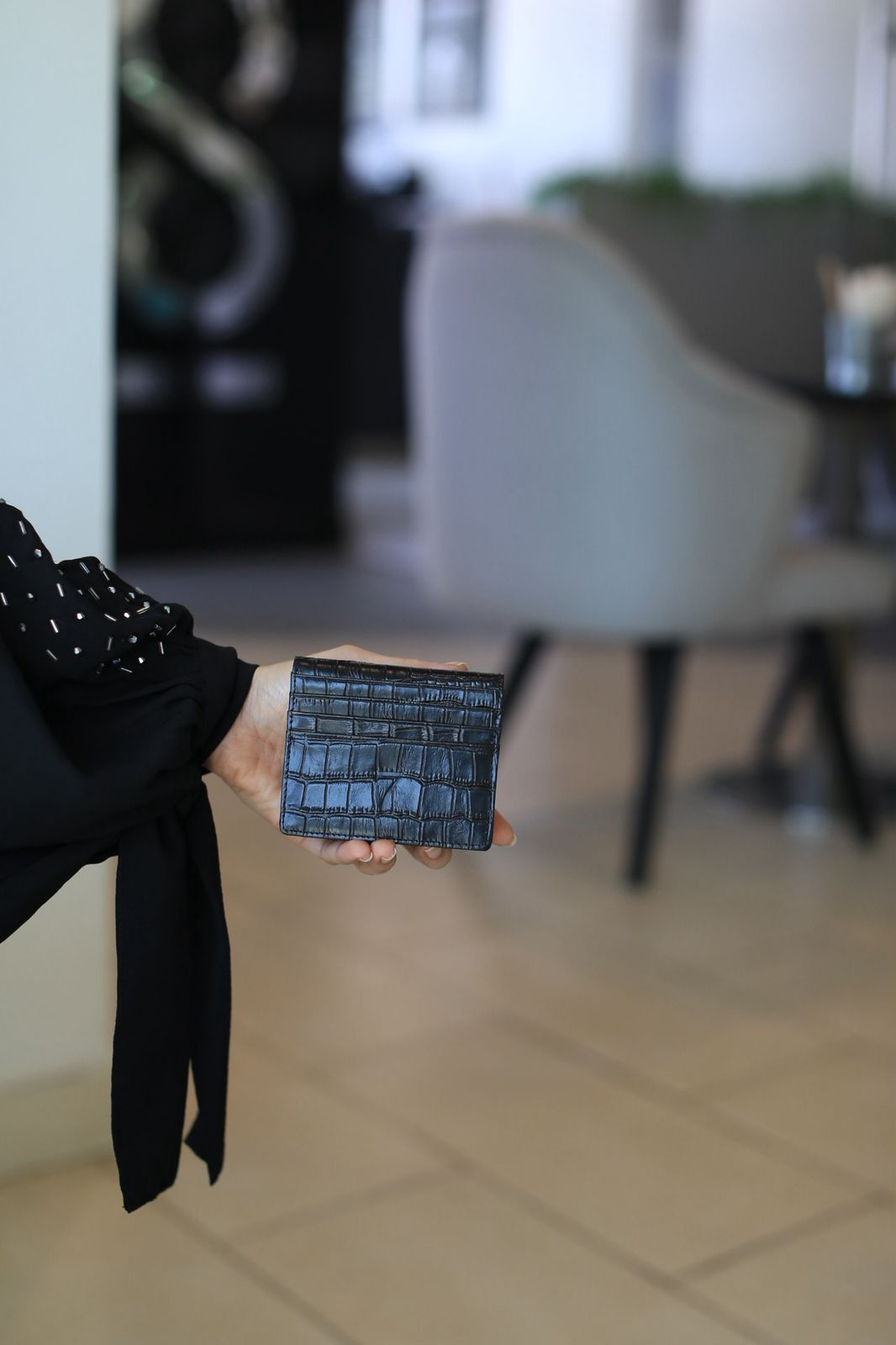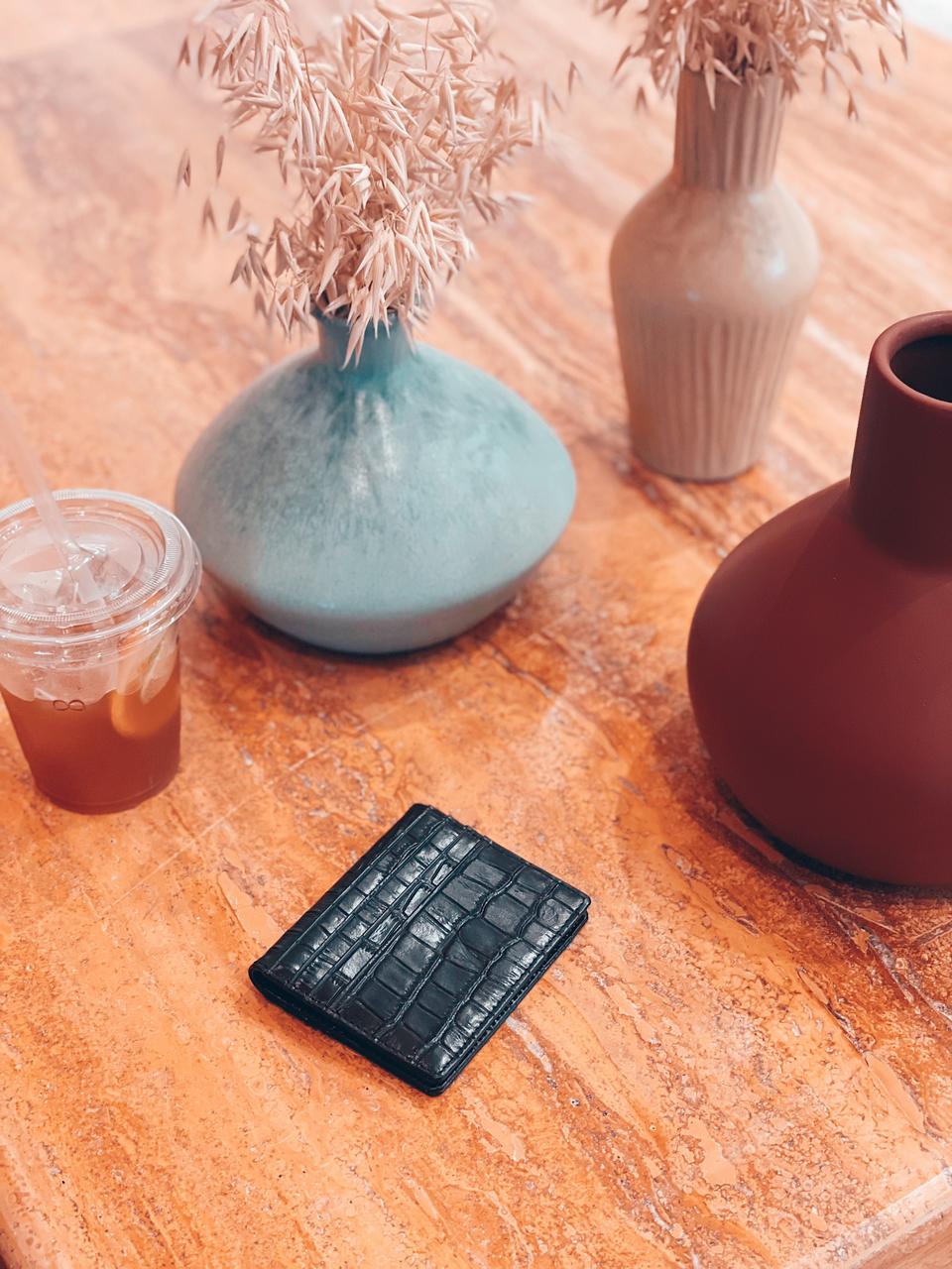 7 WALLET CROAC LEATHER CARD WALLET - BLACK