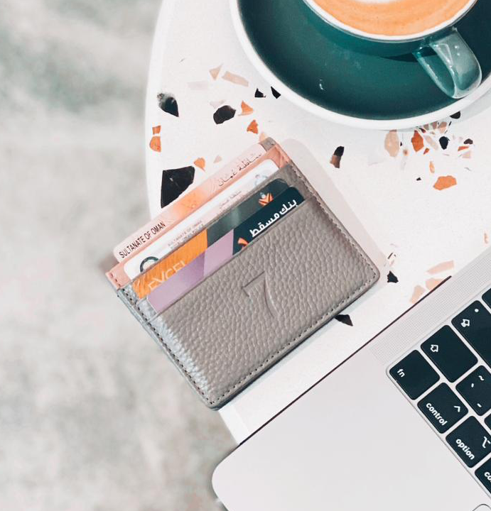 7 WALLET GRAIN TEXTURE LEATHER CARD WALLET - GREY/BROWN