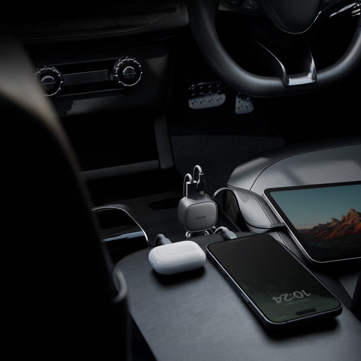 BAZIC GODRIVE LOOP 84, 1C1A CAR CHARGER WITH 75CM RETRACTABLE USB-C CABLE - BLACK