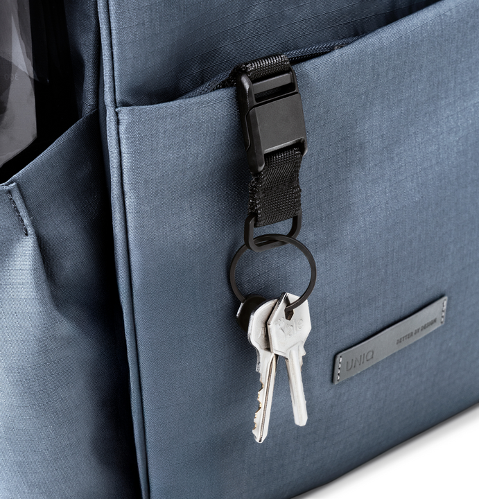 A fold-top opening with a magnetic buckle offers both easy access and secure closure. The anti-crush compartment, built into the top flap, is ideal for storing sunglasses or other delicate items. A hidden zip pocket at the back keeps valuables like your wallet or passport safely out of sight. Inside, side wall pockets help keep items upright, while a discreet external bottle sleeve maintains the bag’s clean silhouette. Finished with contoured, adjustable shoulder straps and a padded back panel for all-day comfort. An integrated magnetic key tether in the front compartment keeps essentials within easy reach.