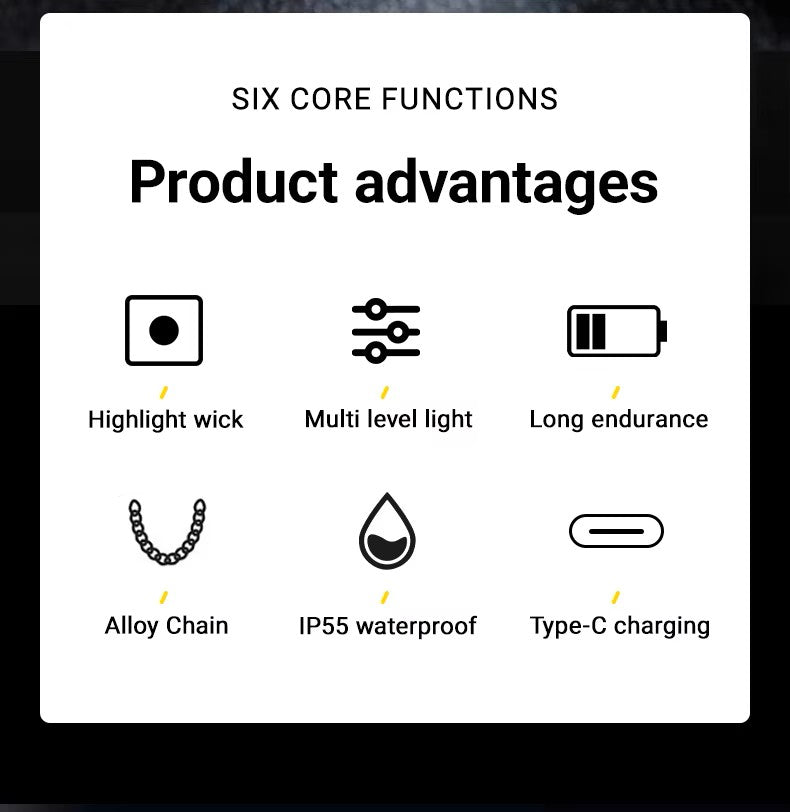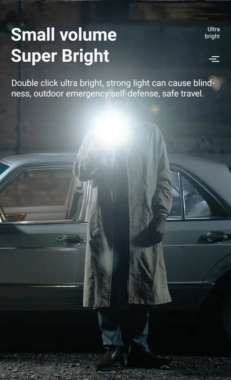 7.Application scenario: Outdoor, urban commuting, portable lighting, vehicle emergency, travel spare, pendant decoration, EDC equipment, etc.